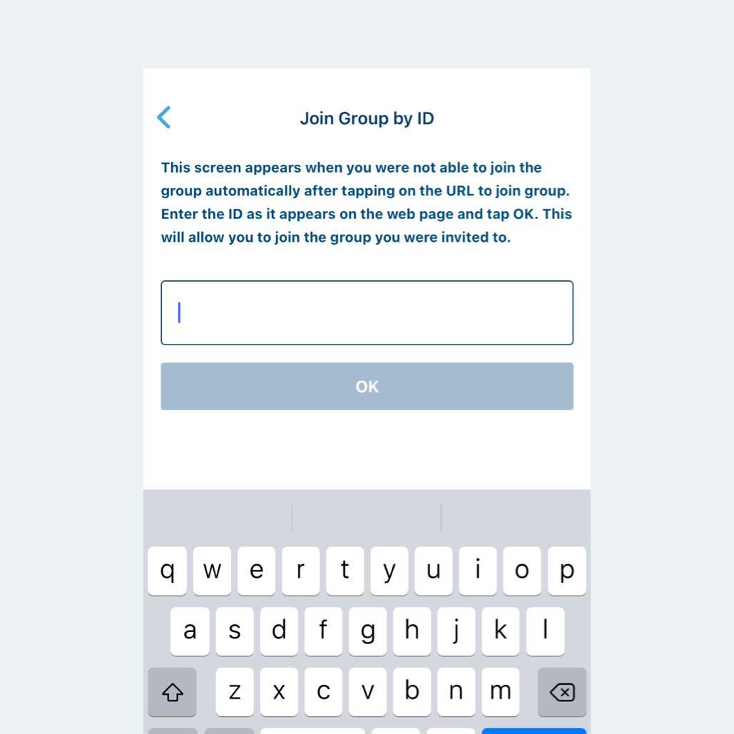 4. On the screen to Join Group by ID, enter the ID from 1. and tap OK to join group.